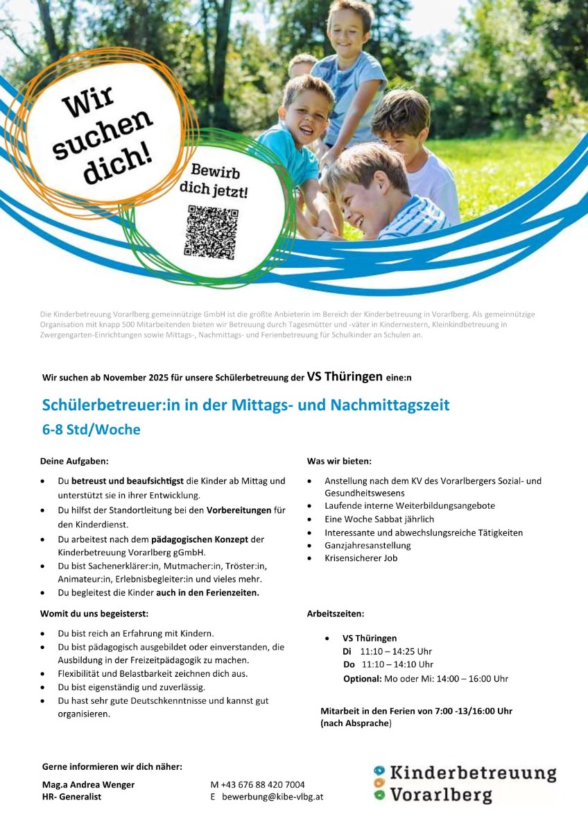 Schülerbetreuer:in in der Mittags- und Nachmittagszeit