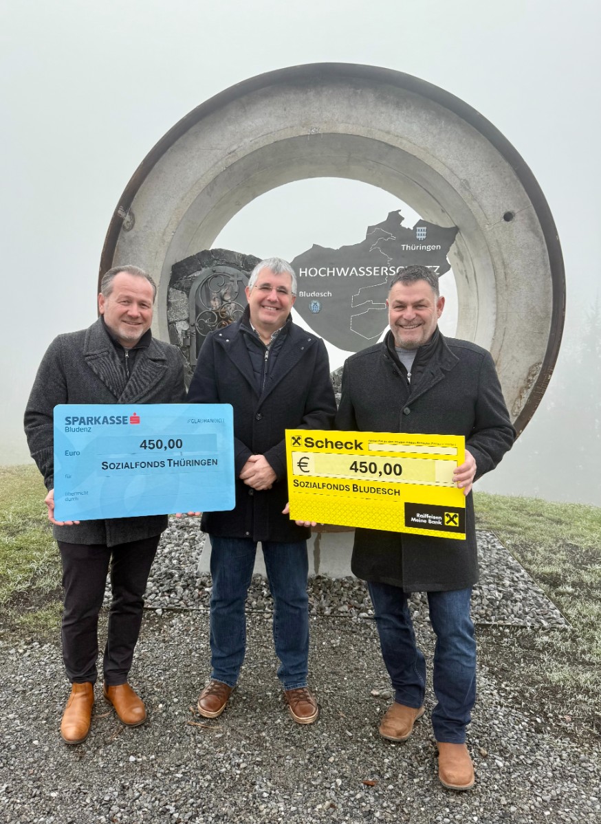 Die betroffenen Gemeinden Bludesch und Thüringen erklärten sich bereit, den großzügigen Vorschlag anzunehmen: Die jeweiligen Bürgermeister Martin Konzet und Harald Witwer nehmen die Spenden entgegen und sichern zu, dass die Beträge dem sozialen Förderfonds ihrer Gemeinde zugutekommen.
