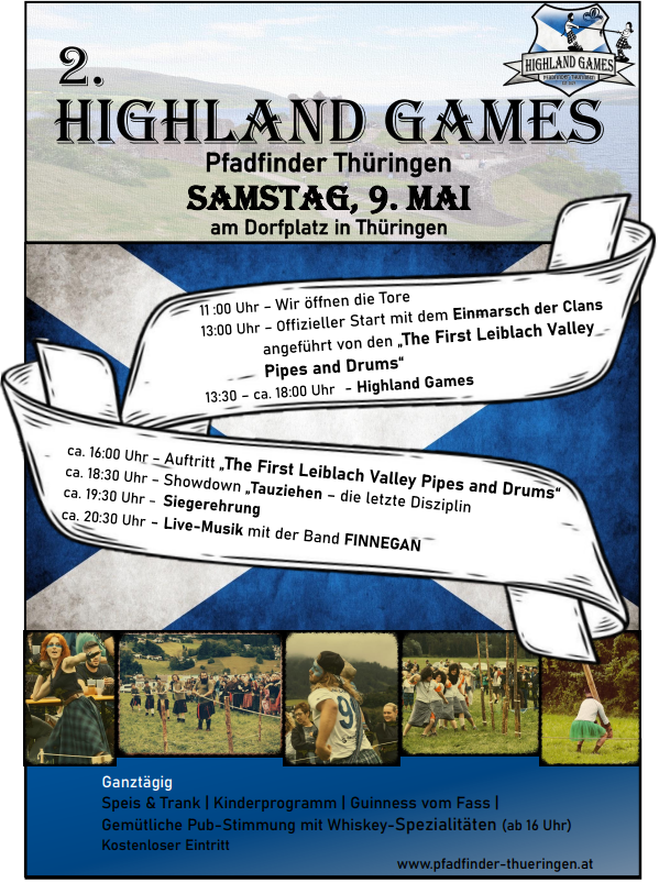 Schottische Tradition mitten in Thüringen? Genau das erwartet euch am Samstag, den 9. Mai, auf und rund um den Dorfplatz in Thüringen, wenn die Pfadfinder Thüringen zu ihren 2. Highland Games einladen.